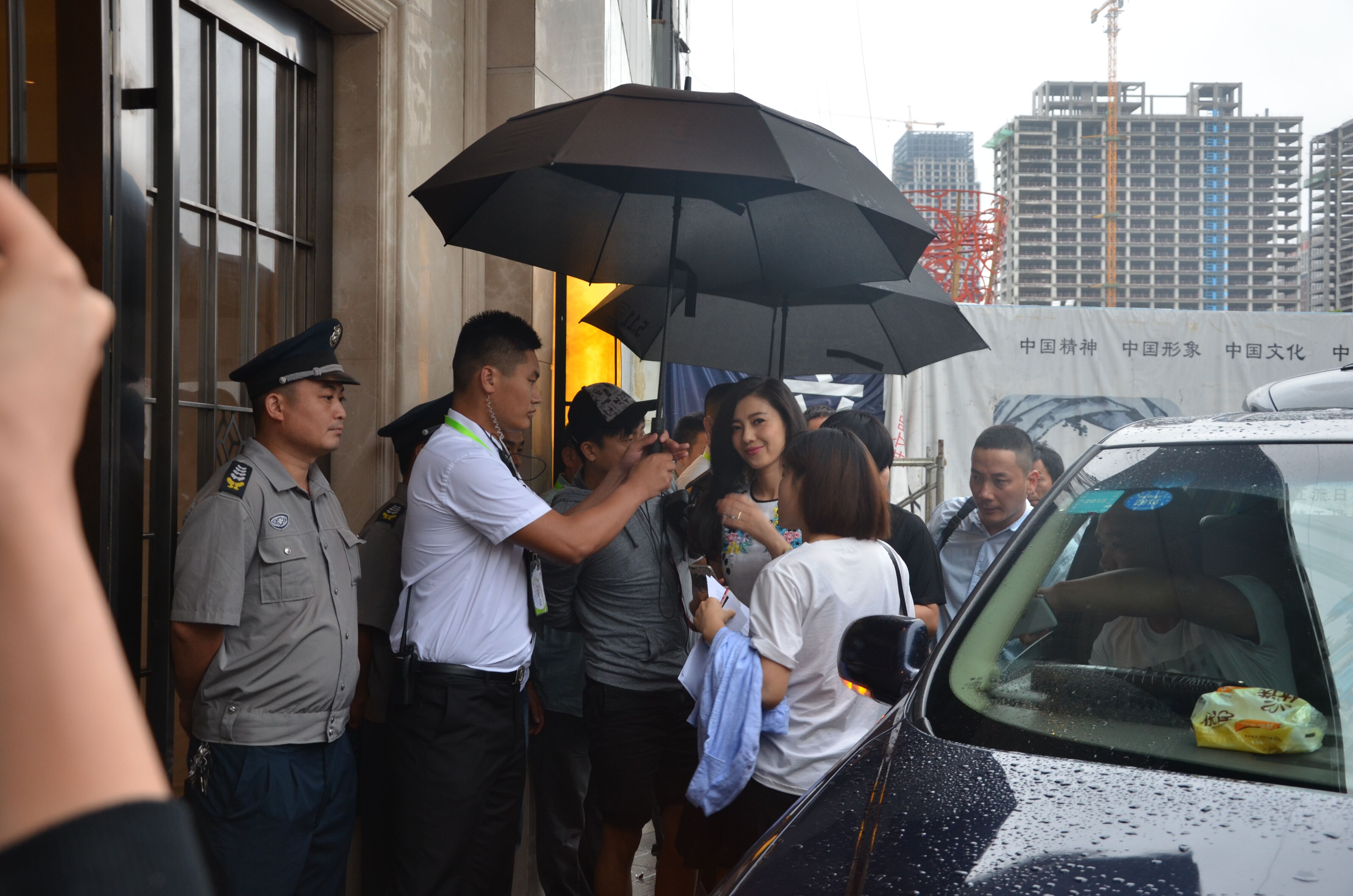 6月27日下午,著名影星,大女神高圆圆小姐伊利合肥见面会在新地广场中心举行。外面大雨淋淋依然挡不住粉丝们的激情与骚动。雷顿特卫SAS保护团队派出4名保镖一路护架。